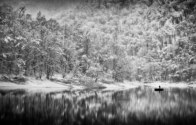 渔人享受着初冬的宁静氛围。摄于斯洛伐克