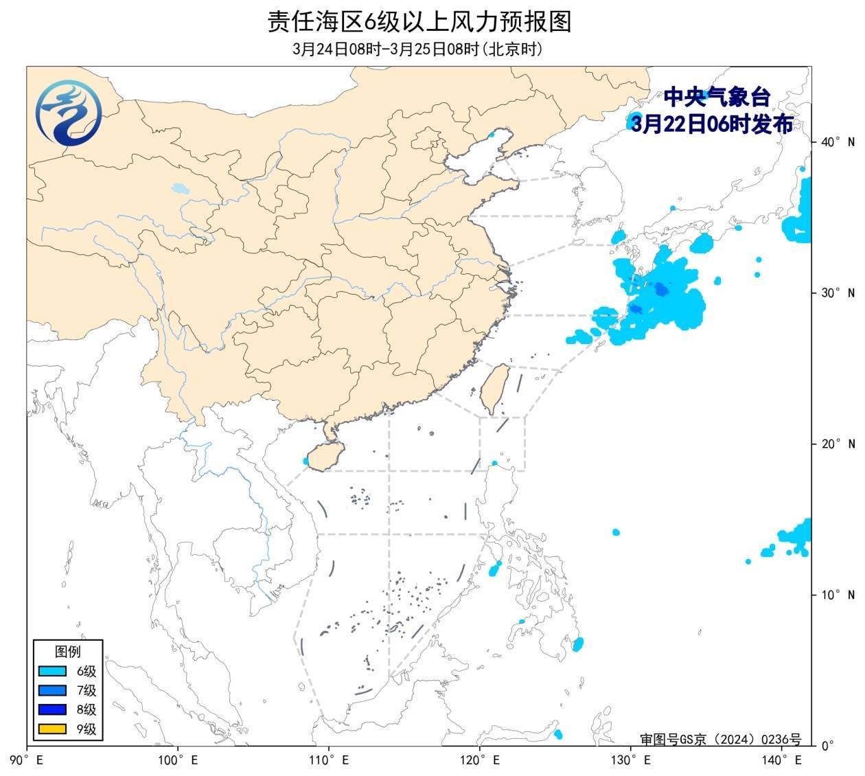 24日08时至25日08时,我国近海风力较小,以5级及以下为主。