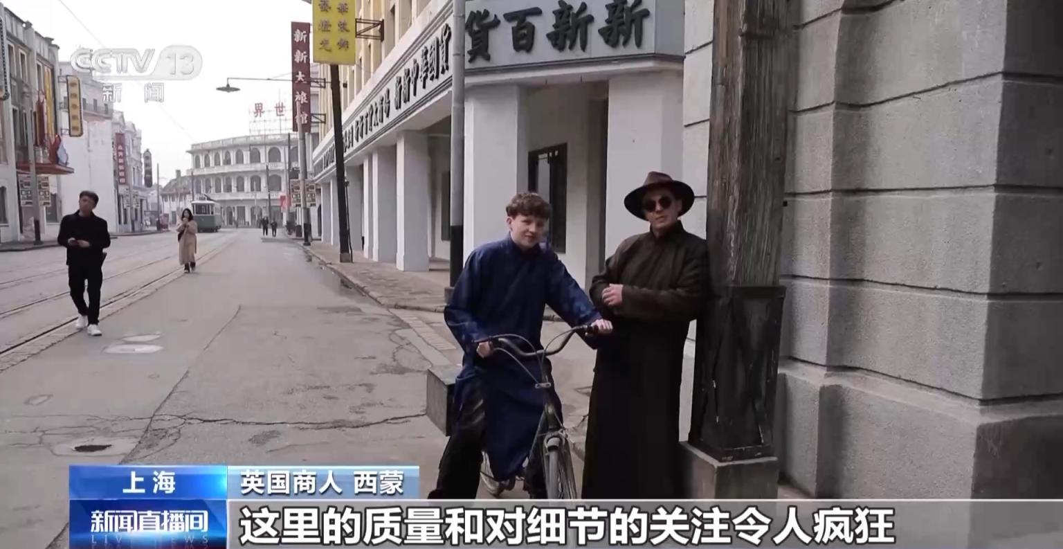 脚下,“随着电影去旅游”成为新风俗,在上海影视乐土,这对来自英国的父子正千里浸其中,感受中国光影寰宇的奇妙。