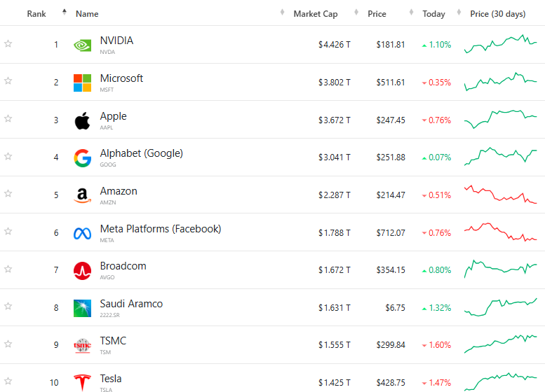 从市值对比来看,若将黄金的总市值与环球巨头企业进行对比,现在黄金已王人备不错轻松弛松“一个打十个”。黄金的市值比前十大股票——英伟达、微软、苹果、Alphabet、亚马逊、Meta、博通、沙特阿好意思、台积电和特斯拉的总数(25.3万亿好意思元)还高。