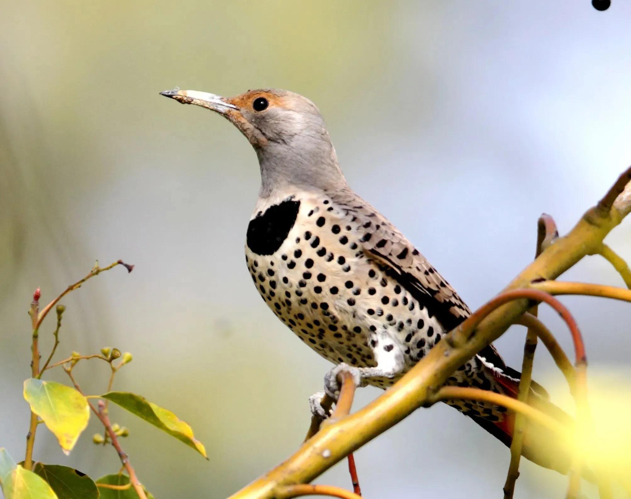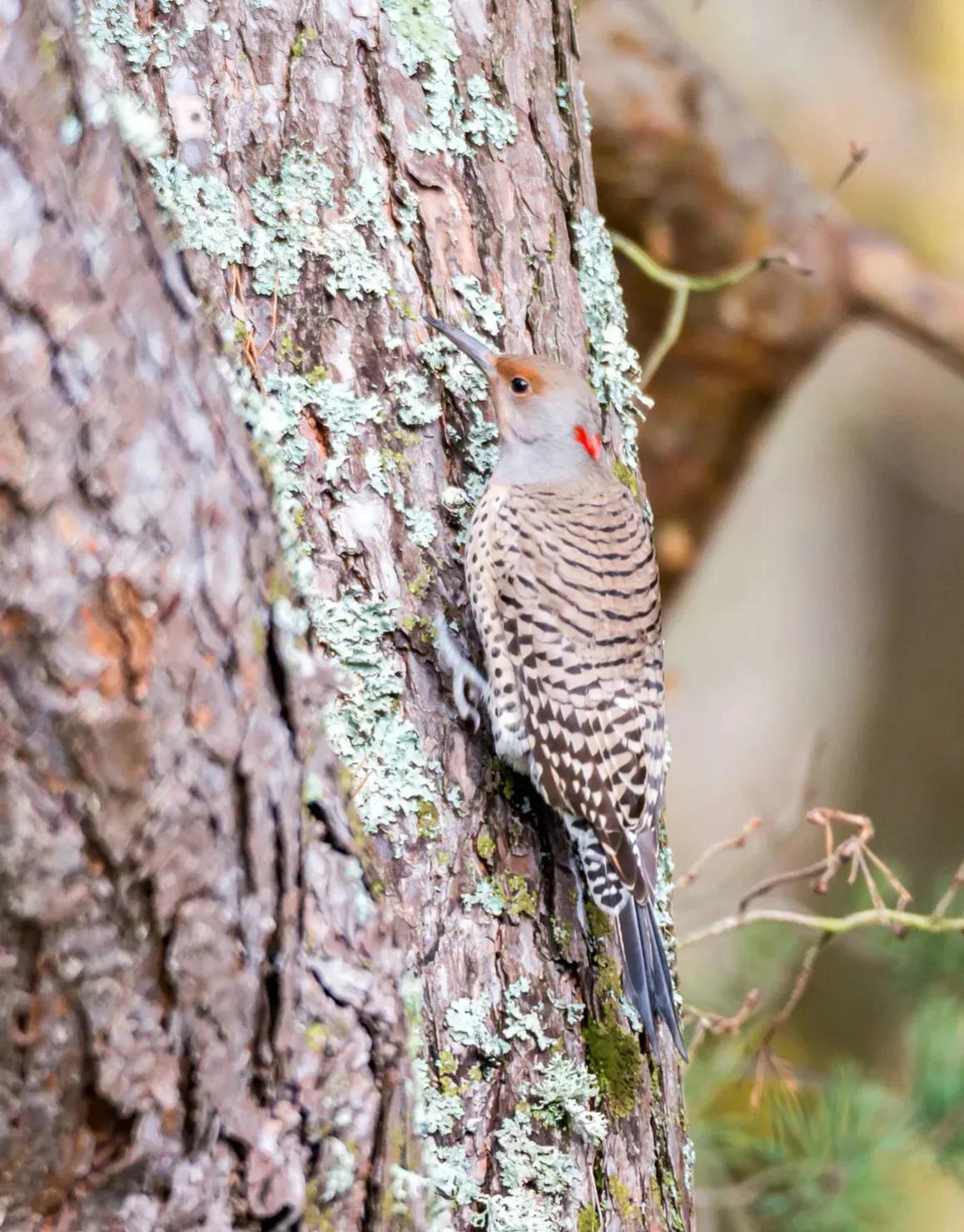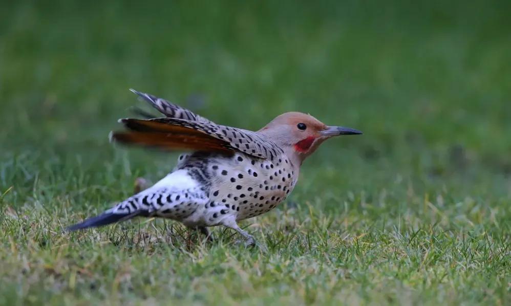 北扑翅鴷主要以虫豸为食,包括蚂蚁、甲虫、苍蝇、蝴蝶、蛾、蜗牛等,其中蚂蚁的占比能达到75%。但它们也会吃一些浆果、种子、坚果等植物性食品。