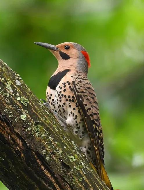 北扑翅鴷:鴷形目、啄木鸟科、扑翅鴷属鸟类,属中微型鸟类。体长30-35厘米,体重105-167克。它们领有粗壮坚强的鸟喙,为黑褐色。爪子为淡褐色,尽头的有劲。眼睛为玄色,如团结颗玄色的相持嵌入在脸上。头部和颈部以灰色为主体育游戏app平台,额头至眼睛周围为淡栗色,脑后有着一块红色的羽斑,雄鸟在嘴角处有着一条红色或者玄色齐羽带,延长至颈部,如同胡子一般。
